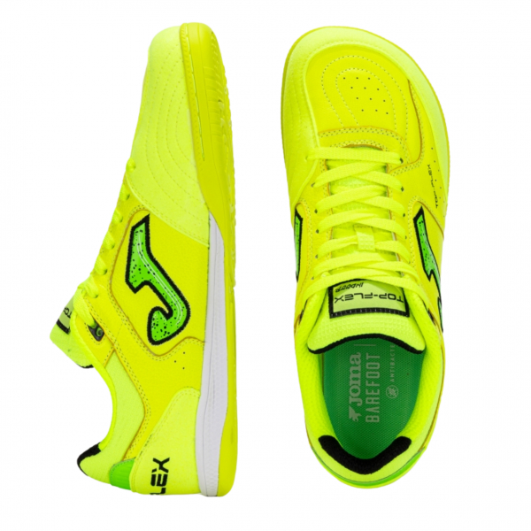 Las Joma Top Flex Foot Shape 25 Indoor en vibrante verde flúor son la elección perfecta para jugadores de fútbol sala que buscan comodidad, control y rendimiento en pista. Diseñadas con una horma foot shape que respeta la anatomía natural del pie, estas zapatillas ofrecen una pisada más estable y confortable, además de un contacto óptimo con el balón para un juego más técnico.